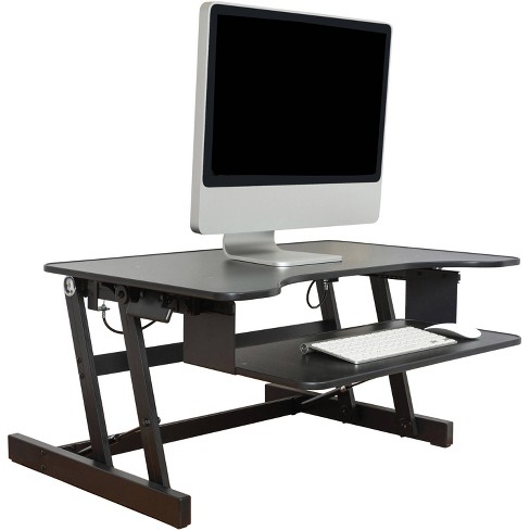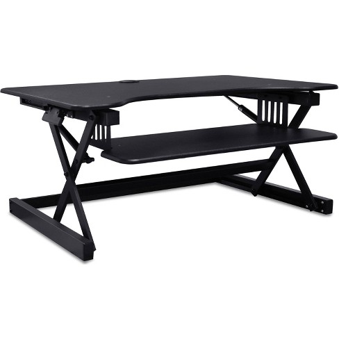 This deluxe sit to stand desk riser comes in black and features a user friendly design.