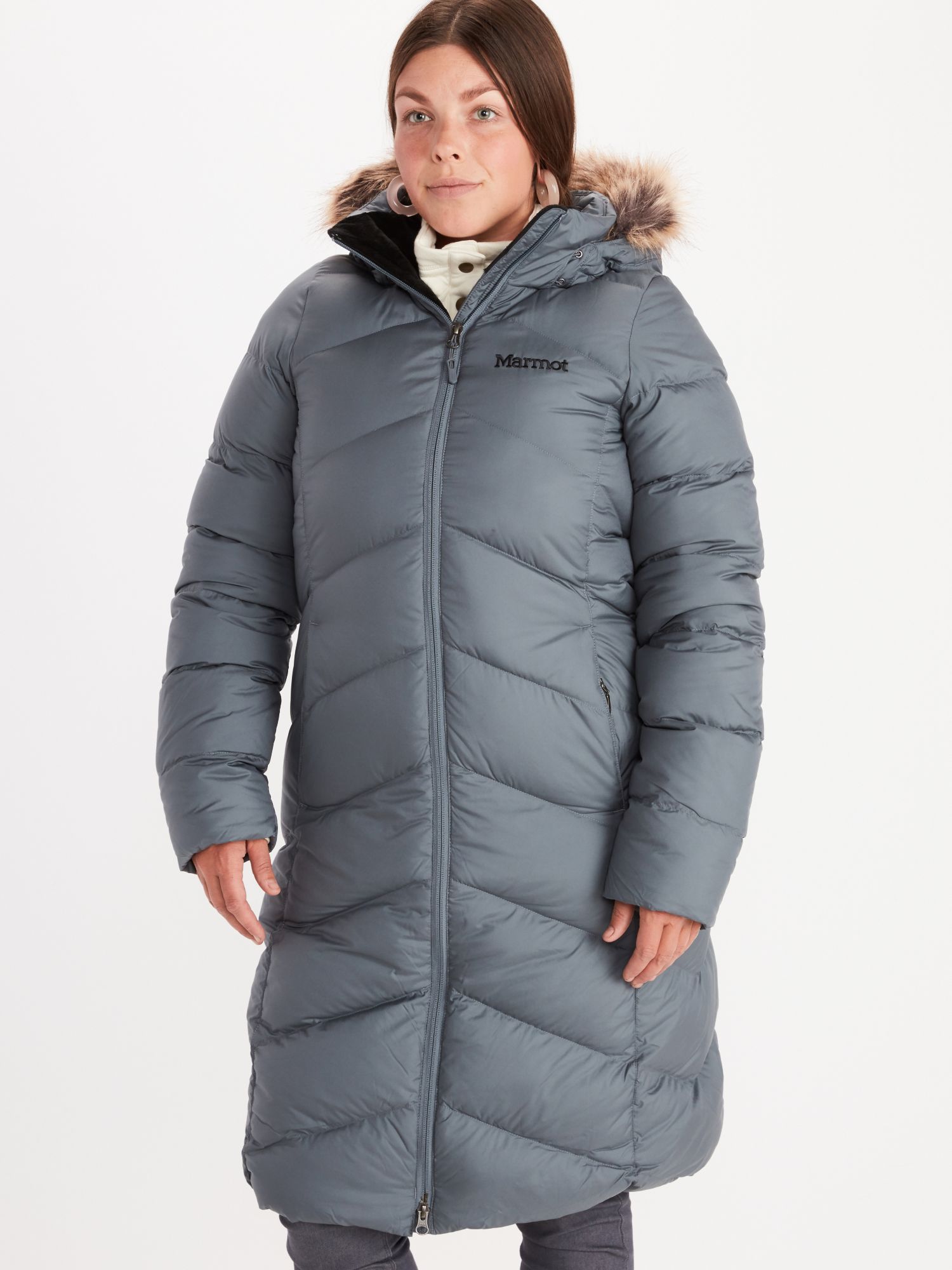 The baffles are packed with lofty 700 fill power down for warmth and comfort all the way around and the parka like length extends coverage to the hips and thighs.